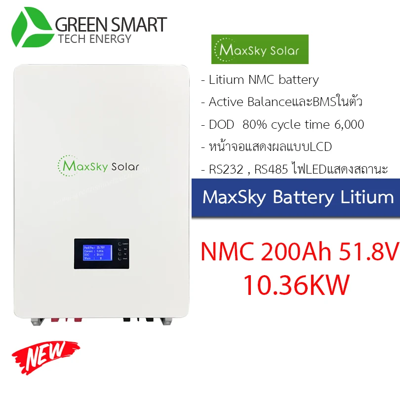 Maxsky แบตเตอรี่ลิเธียม NMC ขนาด 10.36 kWh 200Ah 51.8V …