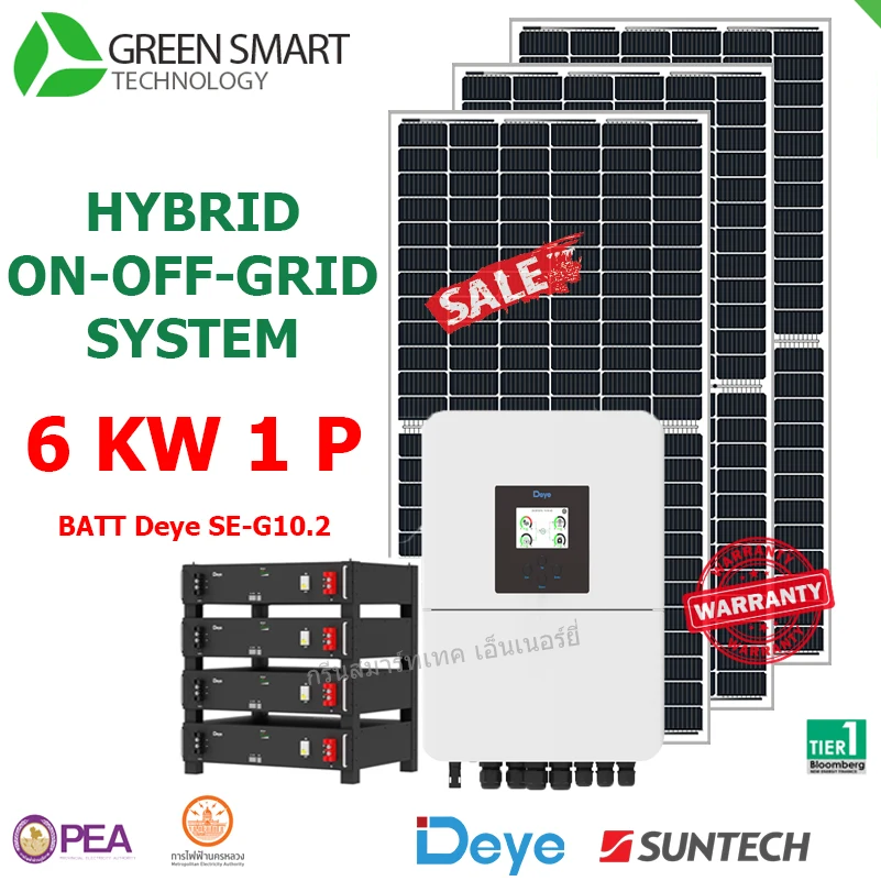 ชุดโซล่าเซลล์ออนกริด Deye 6 Kw 220V 1 Phase ลดค่าไฟตอนกลางวันและมีไฟสำรองใช้งานเมื่อไฟฟ้าดับ ( HYBRID ON-OFF -GRID SOLAR SYSTEM )