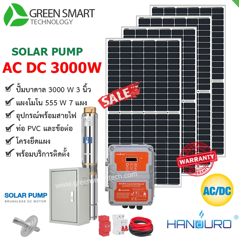 ชุดสูบน้ำบาดาลโซล่าเซลล์ DC Handuro AC DC 3000W 2 ระบบ พร้อมติดตั้งอุปกรณ์ครบชุด