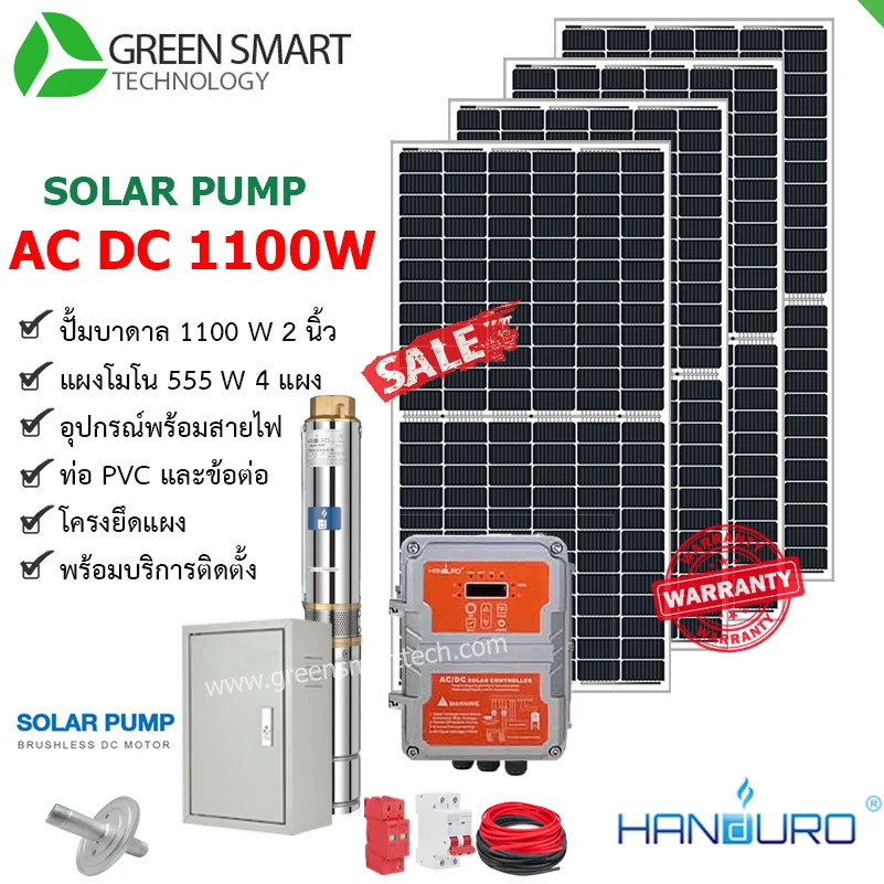 ชุดสูบน้ำบาดาลโซล่าเซลล์ DC Handuro AC DC 1100W 2 ระบบ …